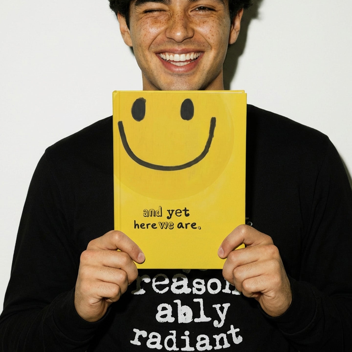 The bold, hand-drawn smiley says “optimism.”